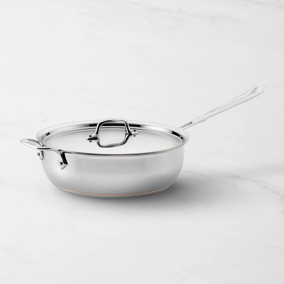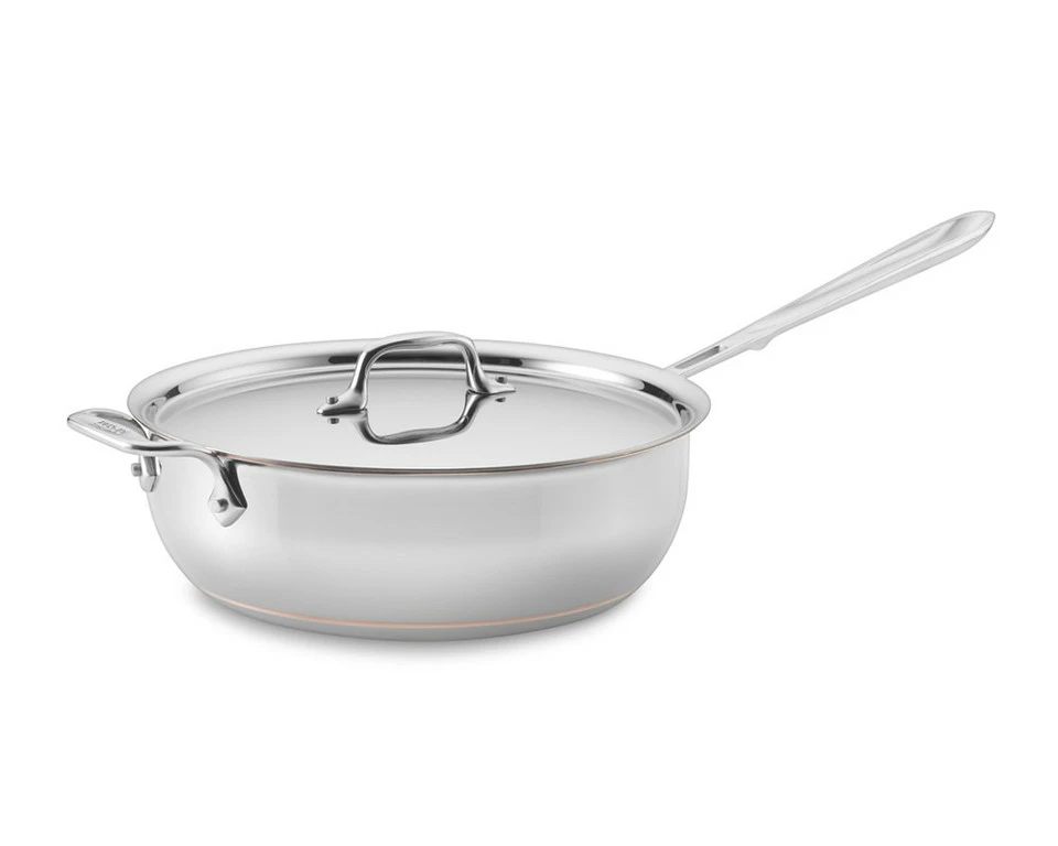 All-Clad’s Copper Core cookware features bonded five-ply construction that combines the superior culinary performance of copper with the cleaning ease of stainless steel. This versatile 3.7-litre pan combines the rounded sides of a French skillet with the height and wide surface area of a deep sauté pan. Ideal for preparing pasta sauces and then tossing in the pasta before serving, it’s also perfect for cooking family-sized stir-fries and risottos and one-pan meals like stews, chillies and oven-baked casseroles.
