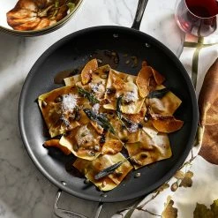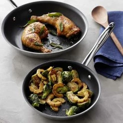 All-Clad NS1 high-performance cookware combines the impressive heating abilities of anodised aluminium, a rugged three-layer PFOA-free non-stick surface and an induction-compatible steel base. This frying pan lets you use less oil when frying eggs, searing and browning meat, and sautéing vegetables.