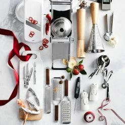 These utensils bring speed and precision to measuring ingredients for baking and cooking. Each is a miniature version of All-Clad’s famous saucepan, made of heavy-gauge stainless steel with a polished finish and the manufacturer’s signature riveted handles.