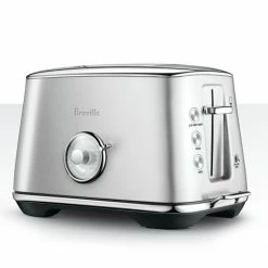 - The Breville toaster showcases a metallic finish and chrome detailing, making it an elegant presence in your kitchen.