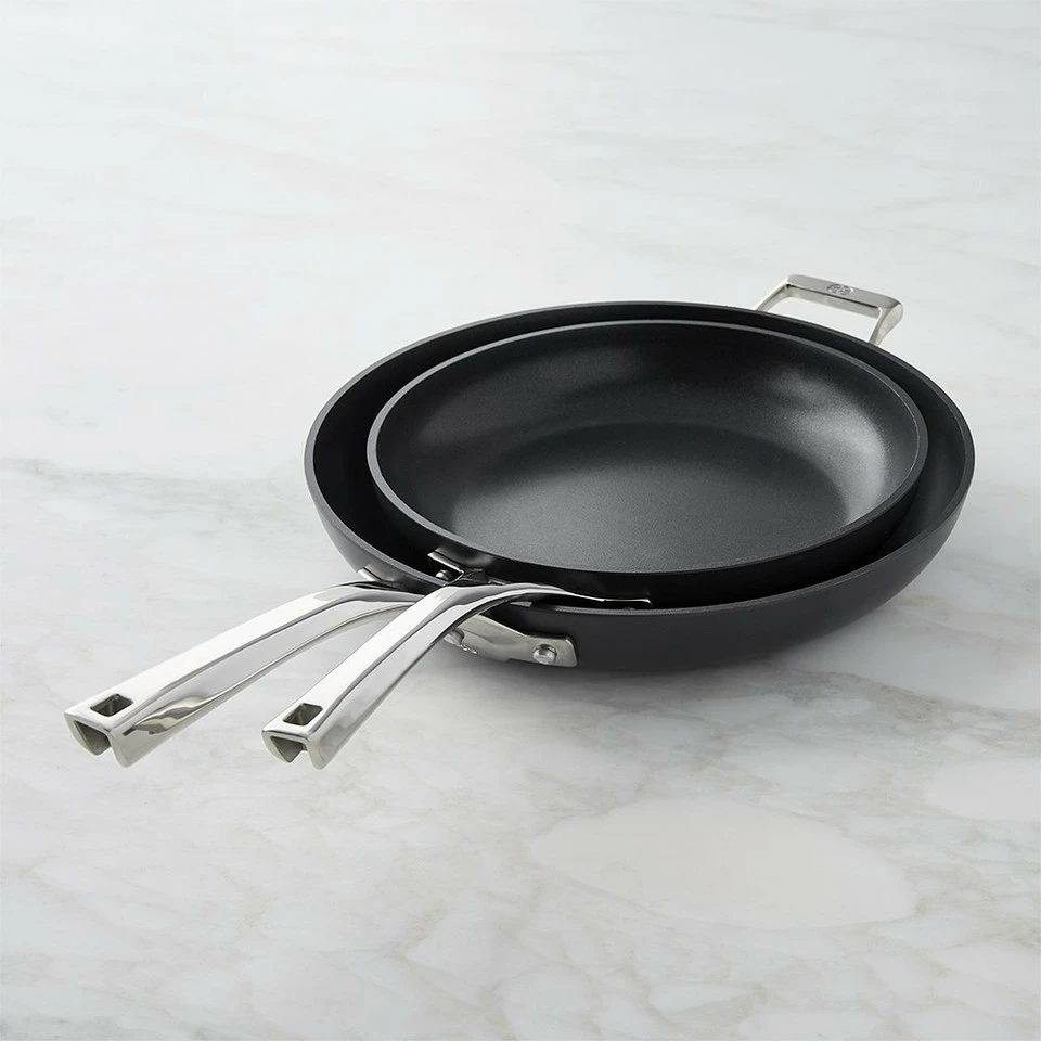 - Set includes 25 cm and 30 cm Calphalon Elite Nonstick fry pans.