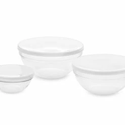 Chuck Williams discovered these tempered glass bowls in Paris more than 40 years ago, and our customers have put them to good use ever since. This special set includes three of the most popular sizes, handy for everything from mixing cake batter to prepping vegetables, plus flexible lids for stackable storage and spill-free transport. Perfectly simple in design, the bowls are useful as casual serving pieces too.