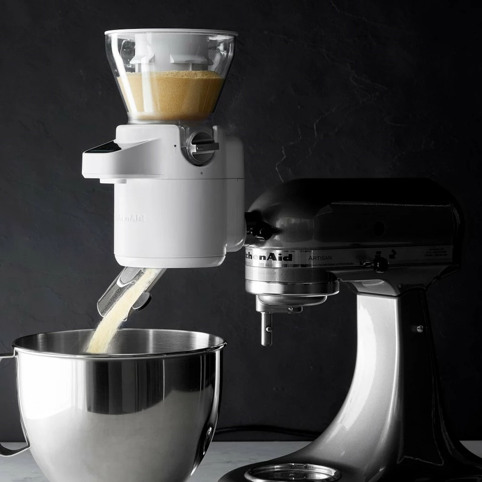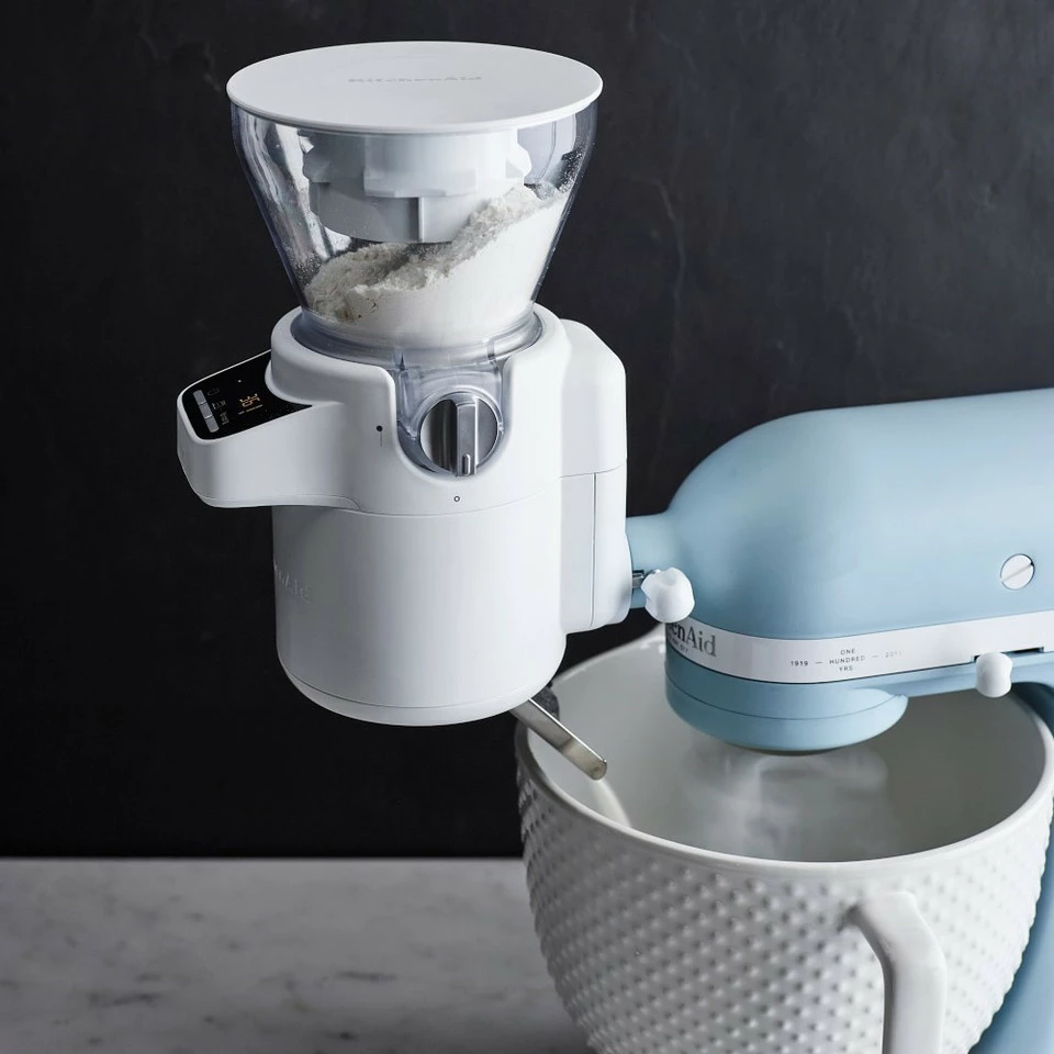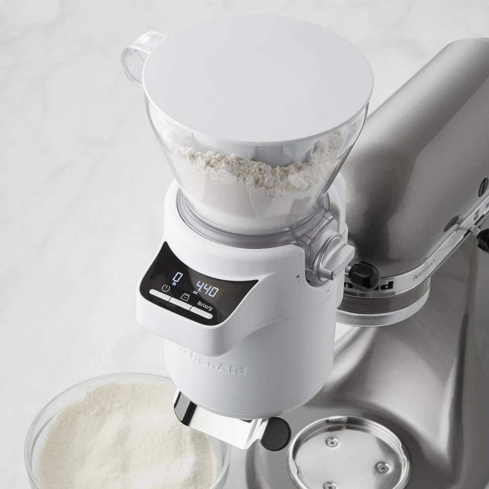 Save time and energy while baking with this innovative attachment for the KitchenAid stand mixer. Designed for supreme convenience and precision, the tool delivers consistent, fluffy flour directly into the mixing bowl with a hands-free design. The easy-to-use digital scale measures ingredients by weight for accuracy and can be used separately on the benchtop with its included plate.