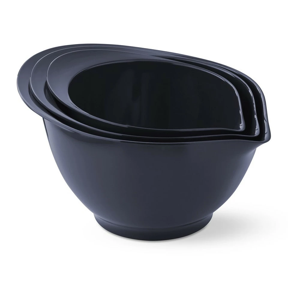 Essential equipment for cooks and bakers – big and little alike – our lightweight, durable melamine bowls are an asset in any kitchen. Each has a non-slip rubber ring on its base to help hold the bowl steady during enthusiastic mixing.