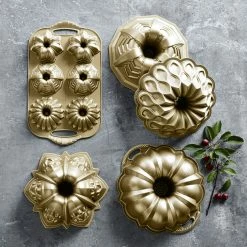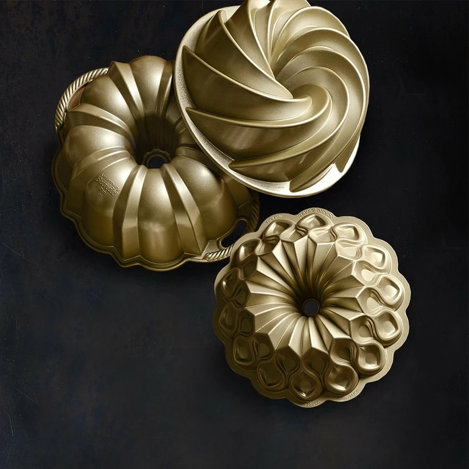 Bake a cake impressive from every angle. Designed in honour of Nordic Ware’s 70th anniversary, this sculptural Bundt® pan pays homage to the company’s Scandinavian roots with elegant peaks and ridges, delicate concaves and smooth ribbon detailing. A gold-tone, non-stick finish guarantees a smooth release so every ridge and curve is well defined and ready for decoration – we recommend a simple glaze or sprinkling of icing sugar.