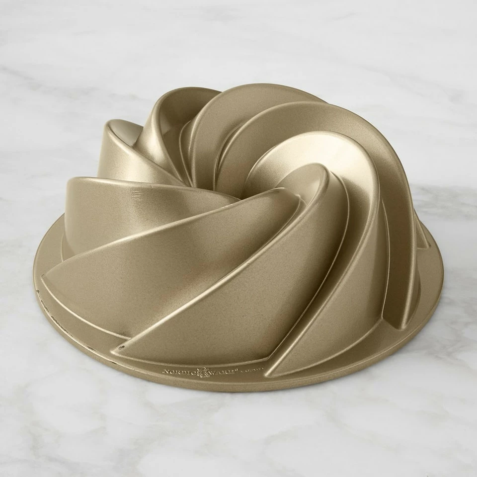 Nordic Ware based this vintage design on an old German kugelhopf mould, which created a ring-shaped dessert similar to an American coffee cake. Designed for a petite version of the Heritage Bundt Cake, this pan turns out an intricately sculpted cake with sweeping curves. To finish the cake, just add a simple glaze or sprinkling of icing sugar.
