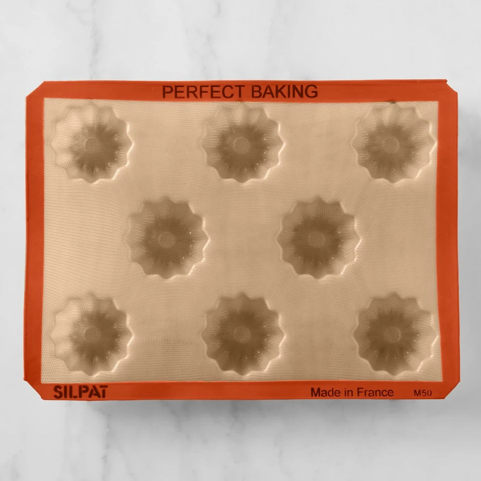 Developed for French patisseries and a favourite of professional kitchens, Silpat’s innovative pan produces 8 petite cakes with charming fluted detail. The lightweight, flexible material optimises heat conduction for consistent, outstanding results. It’s coated in food-grade silicone that offers effortless release and eliminates the need for greasing.