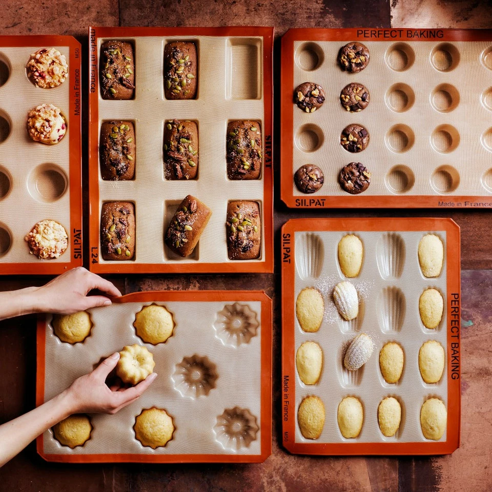 Developed for French patisseries and a favourite of professional kitchens, Silpat’s innovative pan is ideal for baking petite quick bread, banana cake and mini lemon and blueberry loaves. The lightweight, flexible material optimises heat conduction for consistent, outstanding results. It’s coated in food-grade silicone that offers effortless release and eliminates the need for greasing.