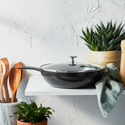 Staub’s innovative enamel coating takes cast iron cooking to the next level with superior performance, style and durability. Featuring high sides that make it ideal for sautĂ©ing and frying, this generously sized pan has plenty of room to accommodate one-dish meals. The glass lid fits snugly to retain heat and moisture while allowing you to easily monitor cooking progress. The glossy, vibrantly coloured majoliquefinish resembles fine ceramics and transitions seamlessly from oven to table.