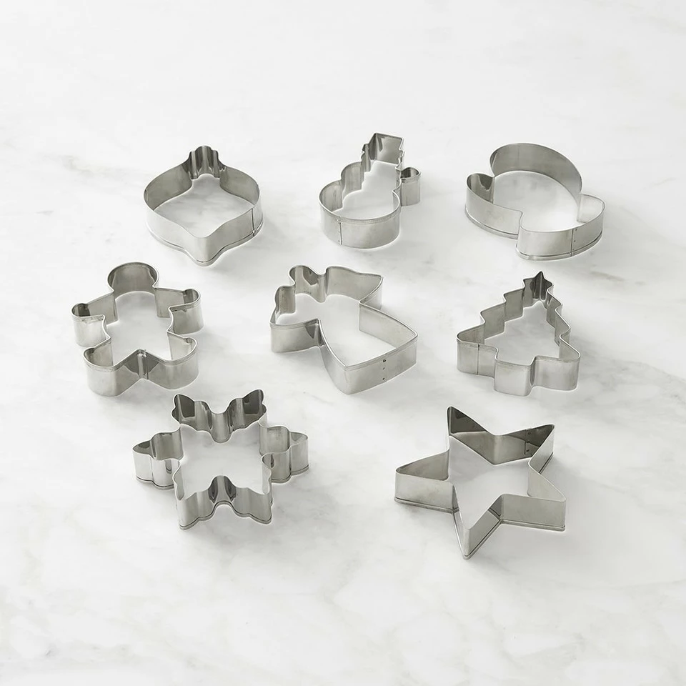 Get set for festive baking with our cookie cutters, in eight classic shapes from angel to snowman. Crafted of smooth, polished stainless steel, they cut cleanly through sugar, shortbread or gingerbread dough, and release the shapes smoothly and intact. Each cookie has ample space for decorating with sugars, sprinkles or a recipient’s name in icing.