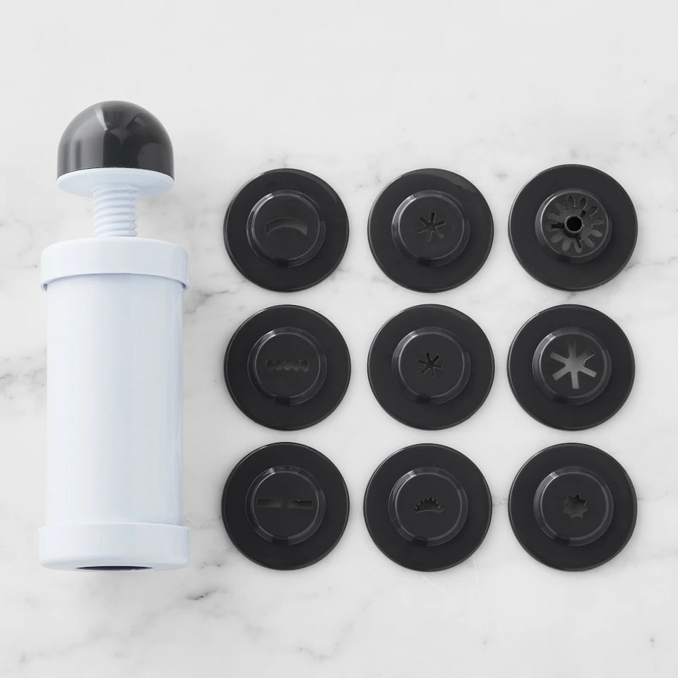 - Press comes with 9 interchangeable discs for making classic and decorative churros.