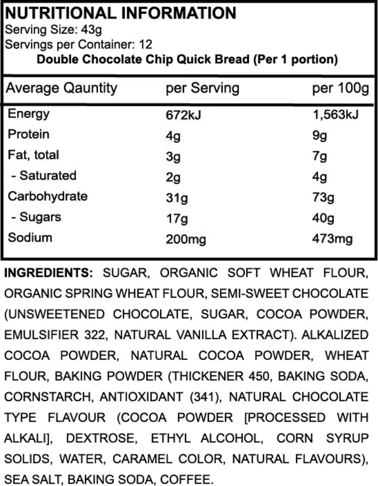 Delight chocolate fans with a decadent homemade quick bread any time of day. Enriched with premium cocoa and plenty of chocolate chips, our custom-blended mix makes it easy. Just add eggs, water and milk, then bake in a loaf pan. For the ultimate treat, serve the bread warm from the oven with whipped cream or vanilla ice cream.