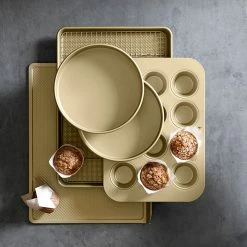 Successful baking relies as much on good tools as it does on techniques and ingredients, and our commercial-quality bakeware provides an outstanding foundation. Crafted of aluminized steel for exceptional performance and durability, the pans feature Goldtouch® Pro non-stick coating–our most advanced non-stick finish–for easy release and quick clean-up.