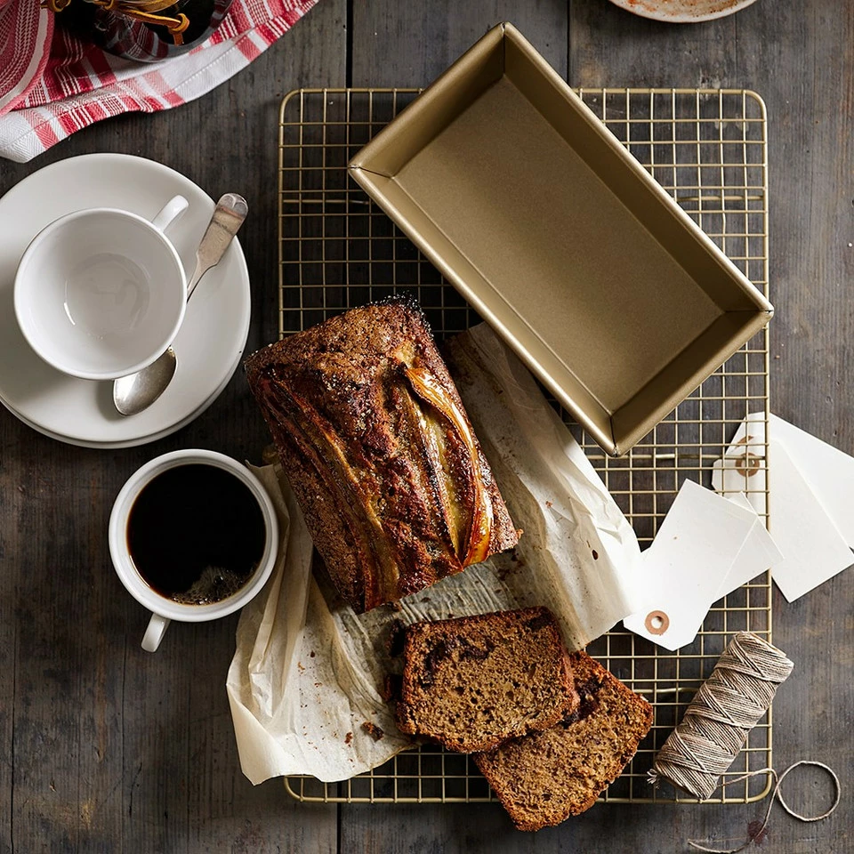 Designed to evenly bake and brown quick bread, yeast bread and pound cake, our commercial-quality loaf pan is crafted of aluminised steel with a wire-reinforced rim for exceptional durability. It features Goldtouch Pro® nonstick coating–our most advanced nonstick finish–for easy release and fast clean-up.
