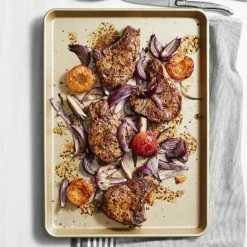 When a half-sheet pan is too small and a full-sheet pan is too big, use our three-quarter sheet pan. Designed to evenly bake and brown, this commercial-quality pan is crafted of aluminised steel and features Goldtouch® Pro nonstick coating – our most advanced nonstick finish – for easy release and quick clean-up.