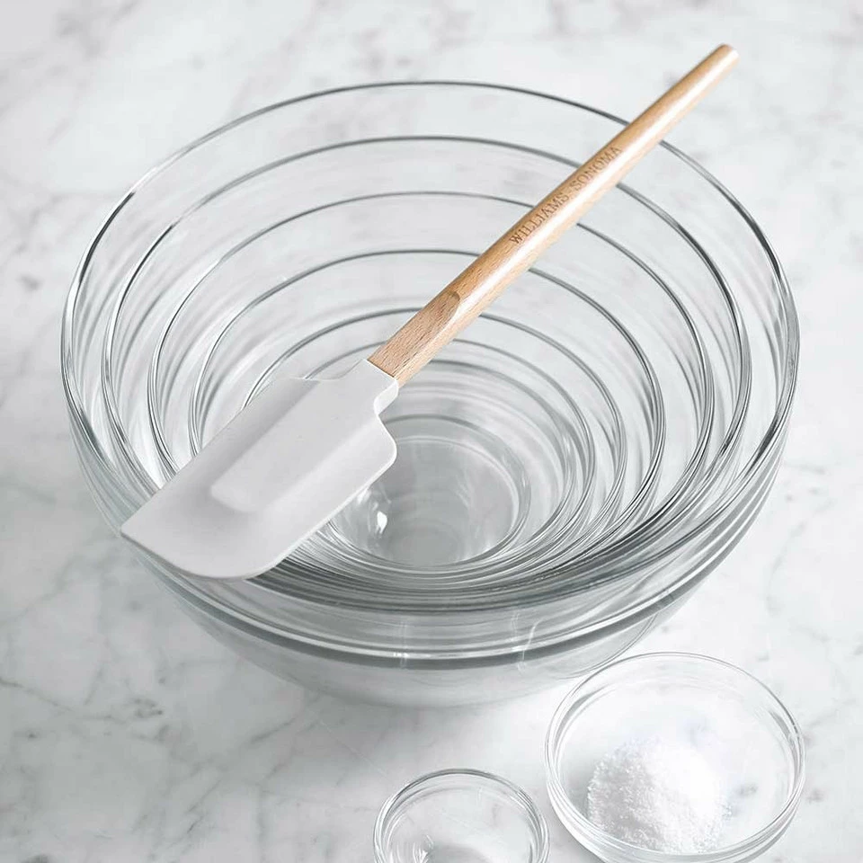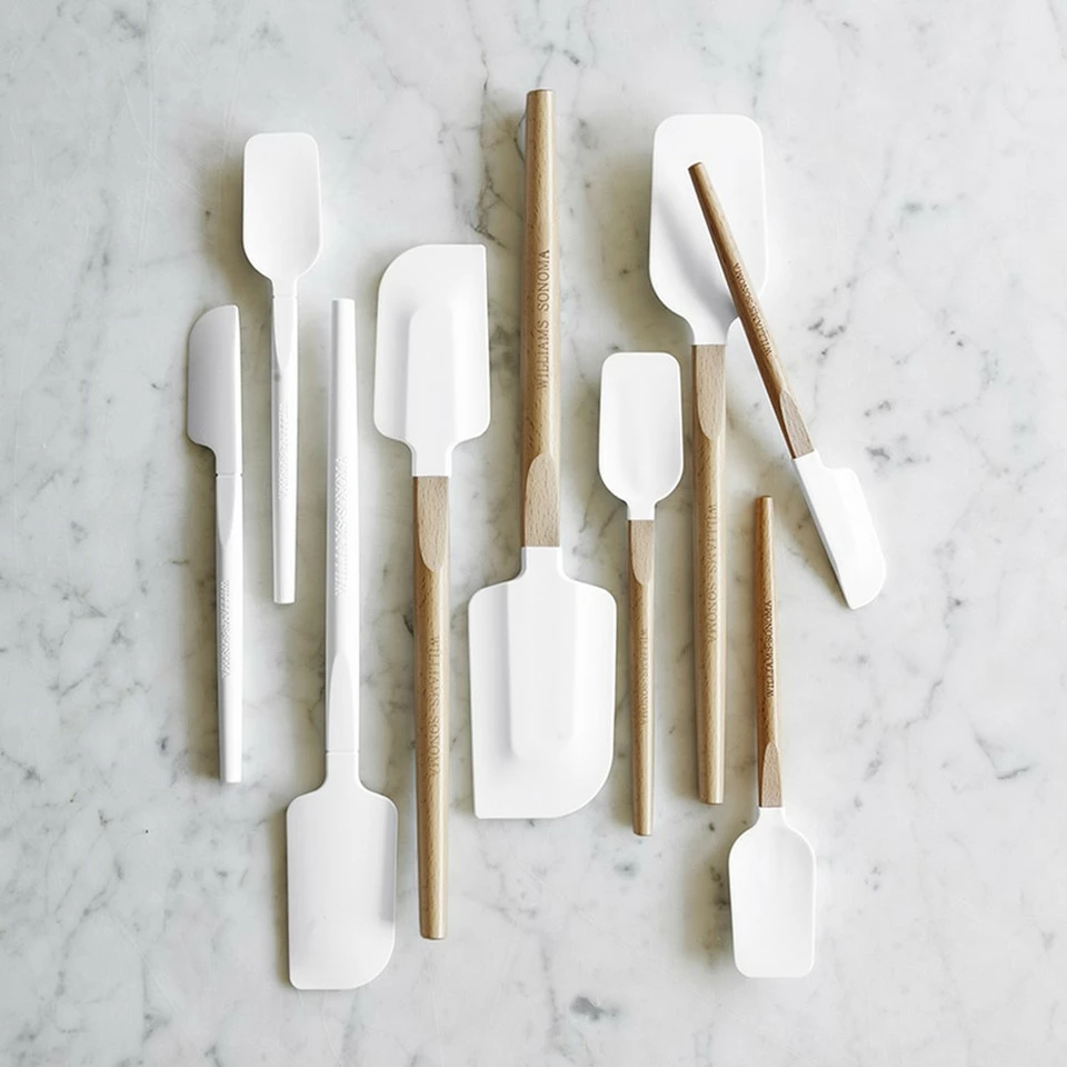 When we set out to design our own line of silicone tools, we stayed true to the “function first” philosophy of our founder, Chuck Williams. Chuck believes that, as the workhorse of the kitchen, the spatula’s two most important qualities are durability and performance. Our signature large spatula has a paintbrush-inspired handle designed to encourage the ideal angle and grip depending on the task at hand. The head is made of hygienic, heatproof silicone in your choice of fresh colours.