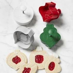 Fill festive dessert trays with ornament-shaped thumbprint cookies. Simply roll out sugar, butter or shortbread dough, then use our spring-loaded stamps to cut out four festive shapes embossed with intricate details and thumbprint centres. After baking the cookies, fill the centres with creamy ganache or fruit jam.