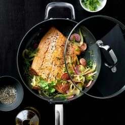 Our durable commercial-quality cookware is engineered for high-performance cooking, effortless release and quick clean-up. Ideal for all culinary techniques, this hard-anodised aluminium frying pan features a triple-layer diamond-infused ceramic non-stick coating to ensure superior searing, frying and browning. The ceramic surface requires little or no oil, perfect for healthy cooking and easy cleaning.