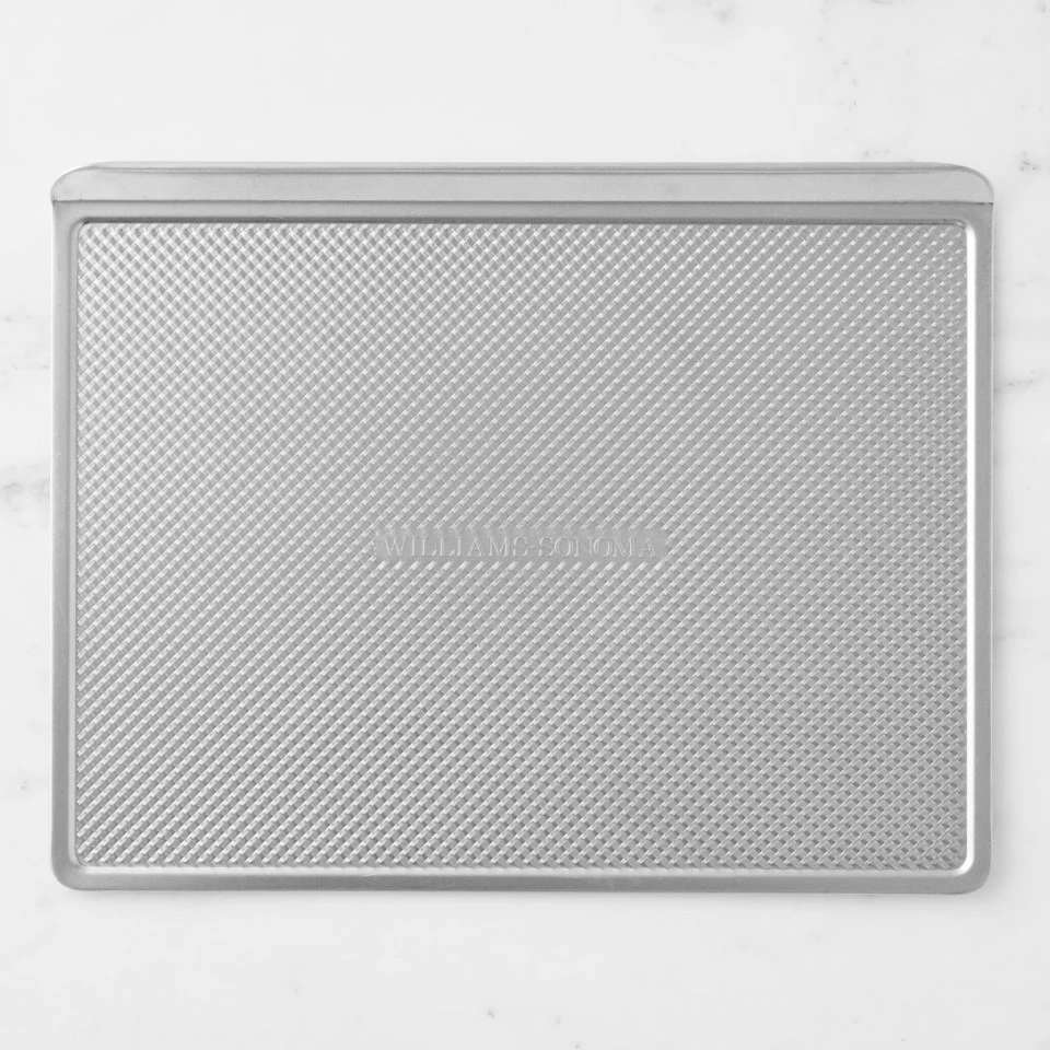 - Unique diamond-textured surface strengthens sheet pan while increasing airflow for even baking.