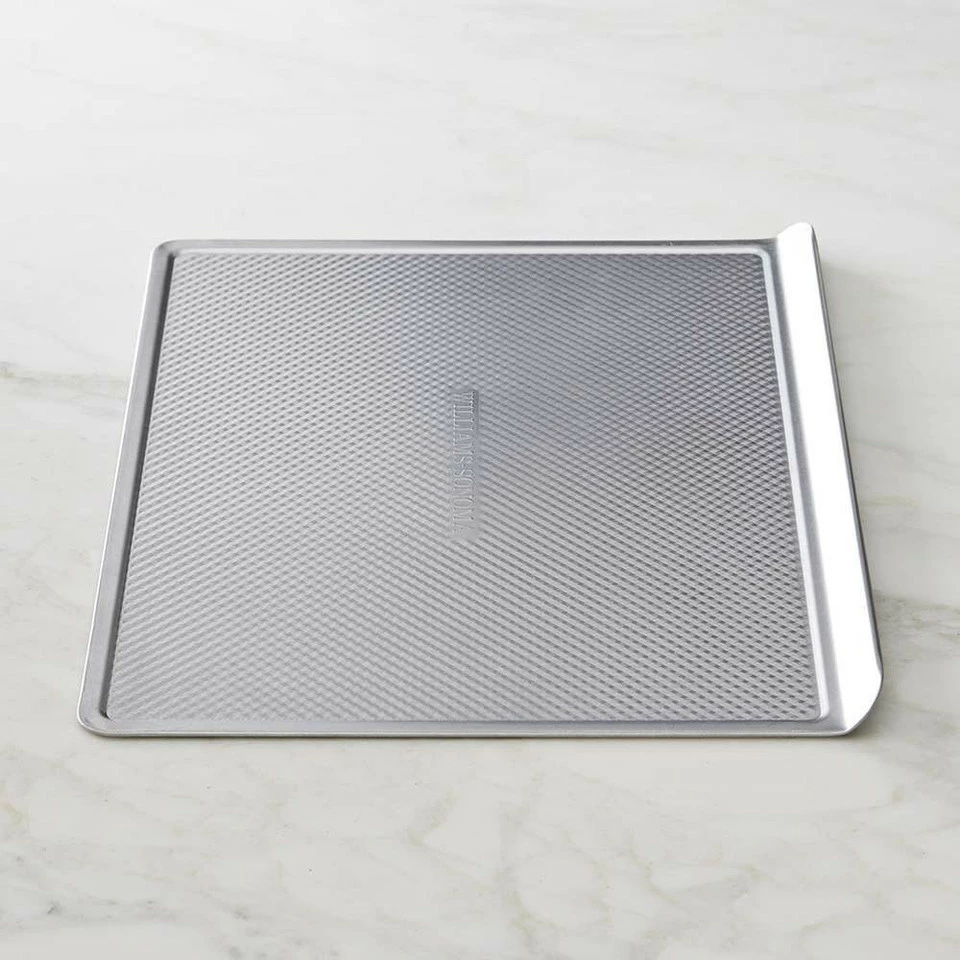 - An angled side provides a good grip when you’re removing the pan from the oven; the longer sides are flat so cookies slide right off.